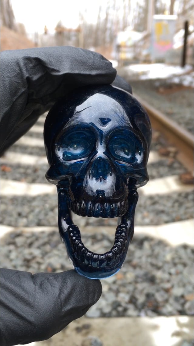 Another sculptural skull pipe to keep us grounded 6ft deep. This one was made with dark blue stardust that i love with its moody blue and subtle sparkle. It pops with light while maintaining dark qualities. The temporal yet infinite nature of time is both frightening and bliss. What an enigma. Its a miracle that we exist at the same place at the same time and you’re reading this. Thank you for existing and taking the time to enjoy my art! Its all from a place of love. Swipe to see some handstyle i’ve been working on. Enjoy the moment, Enjoy the day!! ❤️💀